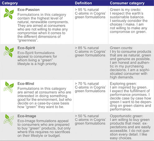 And finally, if we look at Cognis Chemical’s guide to the green consumer, we get a lot more information about how the green consumer thinks…but again under different categories…