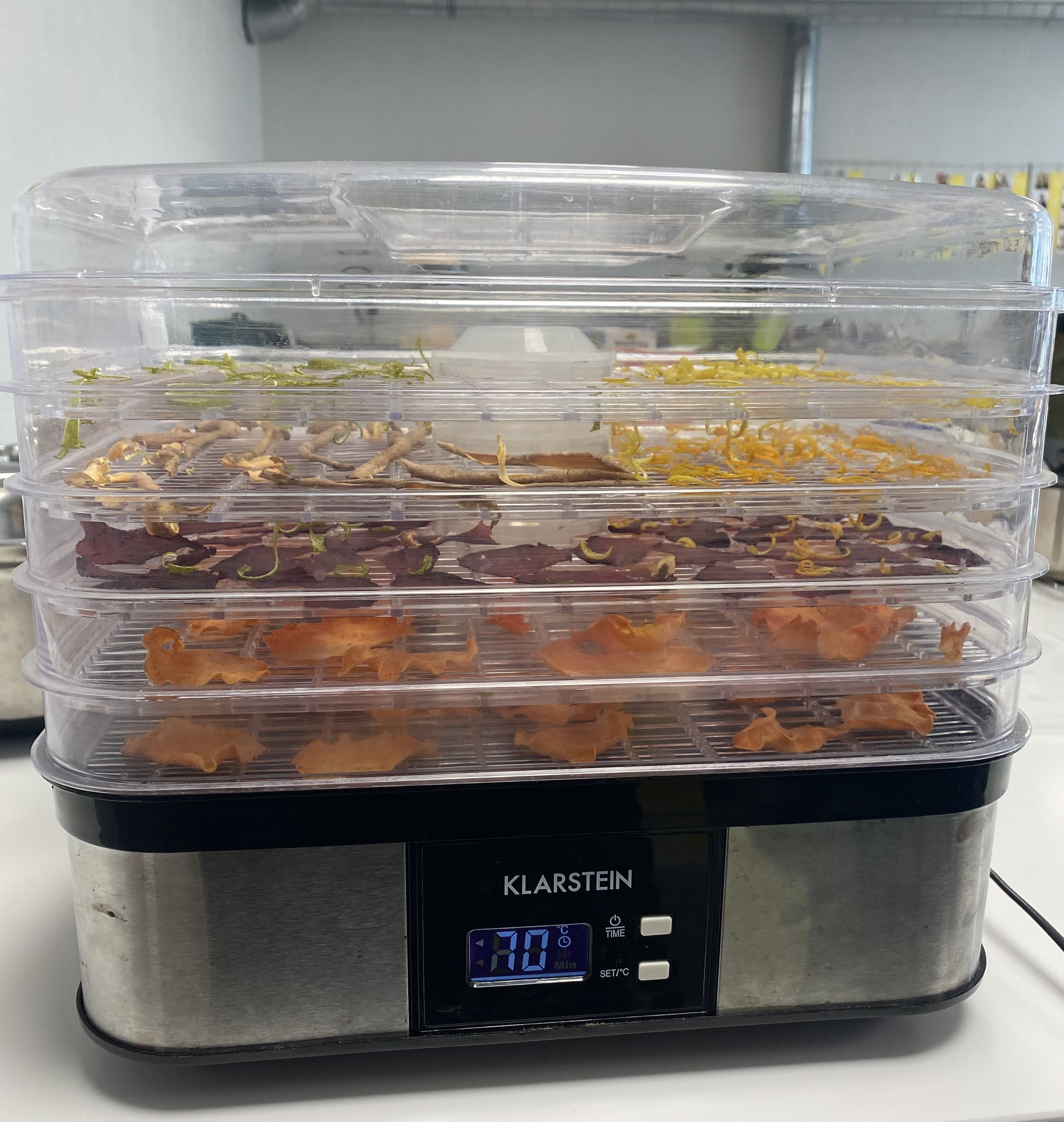The students were separated into 3 groups. 1 group worked on food solutions using natural sugars (fructose) from fruit and vegetables in all their states – juices, pomice, peelings, waste – drying, liquidising, cooking, tasting, testing… a sub-group also looked at Barbapapa (Candy Floss) to test different recipes, flavours, colours etc.