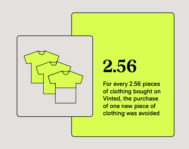“Vinted promotes reuse by helping you keep fashion and other items in circulation for longer, which is a key way to reduce the emissions produced by the fashion industry.* To measure our impact, we asked Vaayu to conduct an independent study of 350,000 of our members and assess the emissions saved during half a billion transactions.”