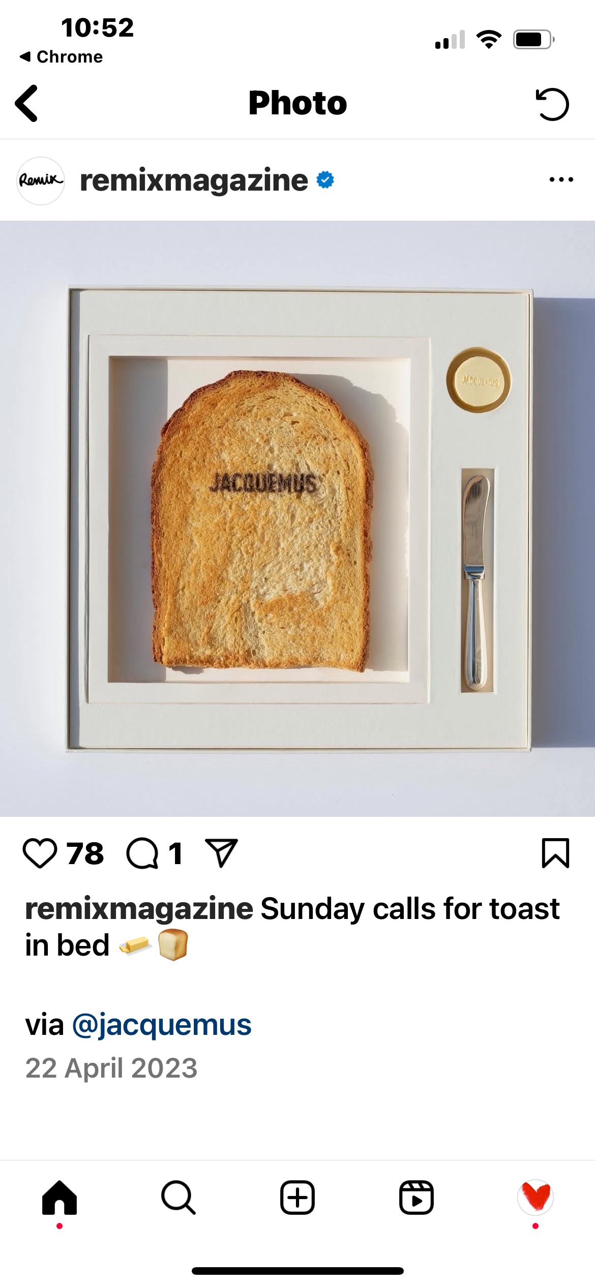 The invitation, includes a piece of toast, in typical Jacquemus style and it encourages me to personalize my breakfast experience (and add my own layer of creativity). This is great communication design but also great Reflective Delight.